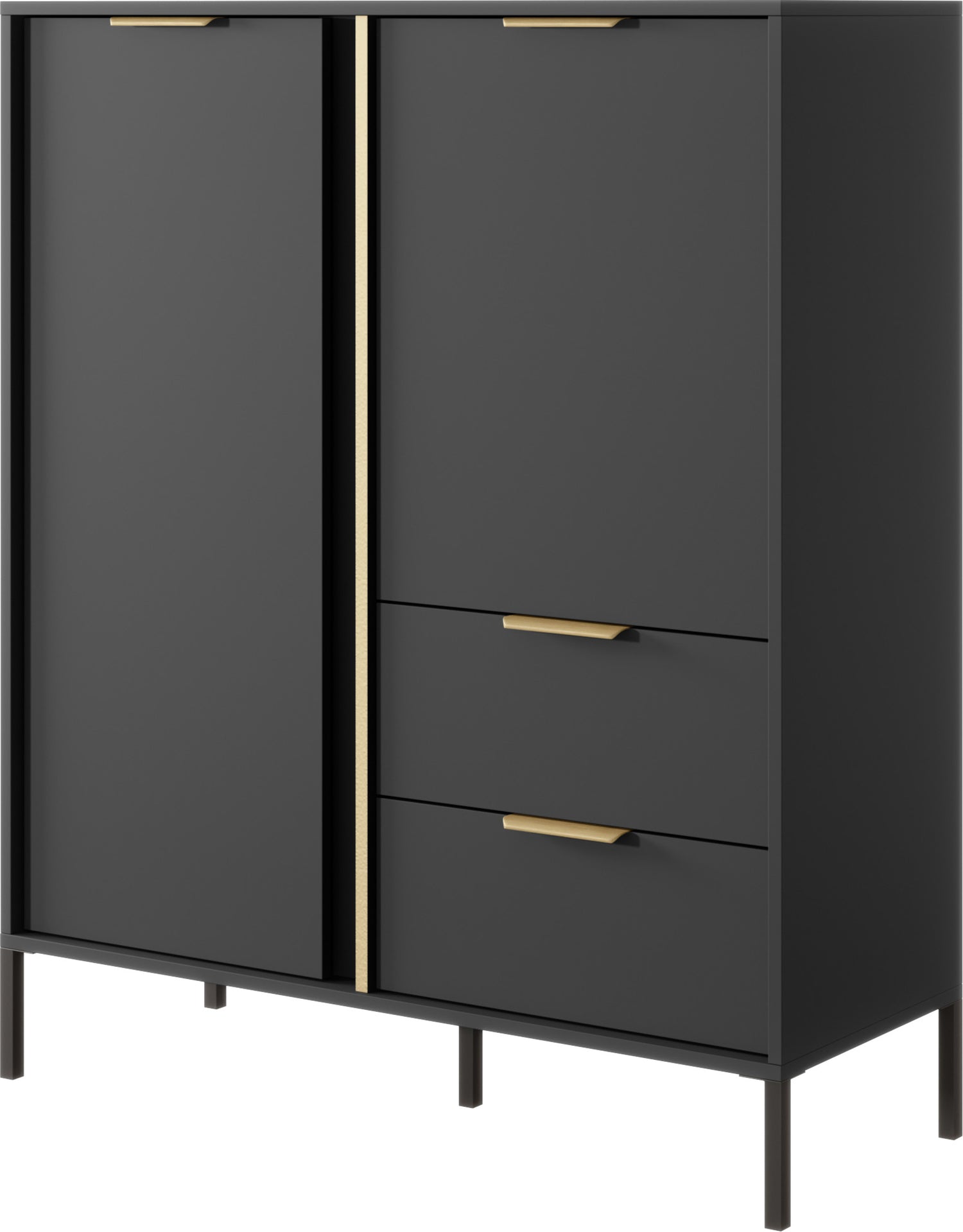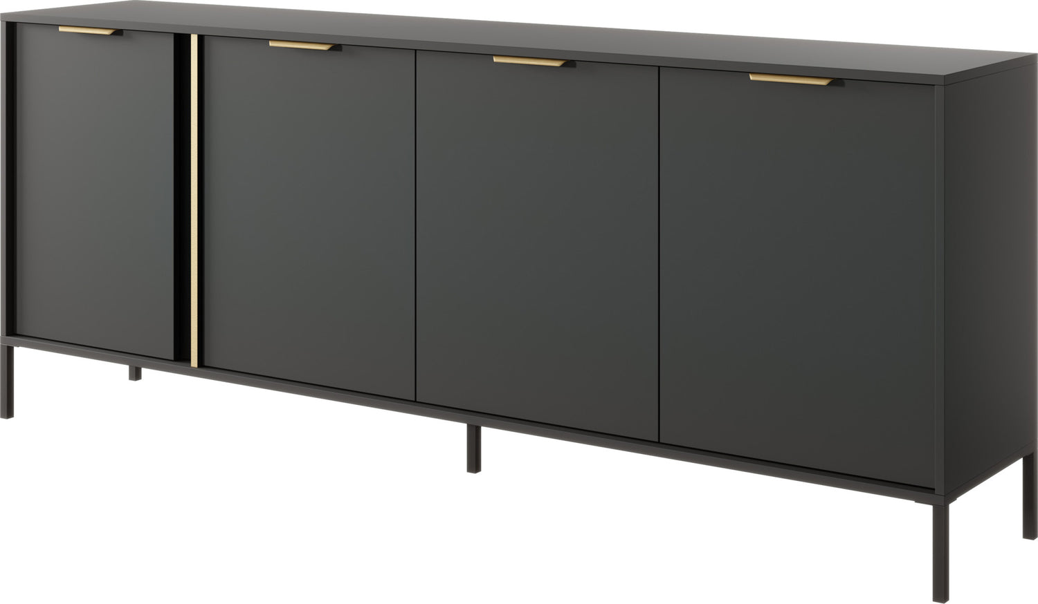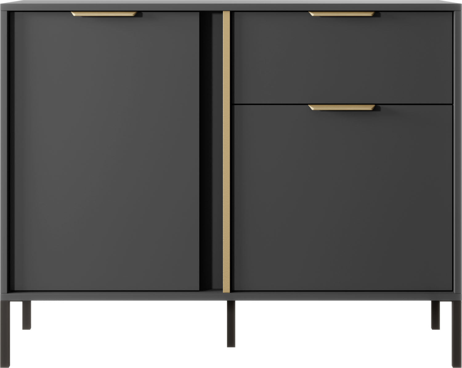 Bringen Sie stilvolle Eleganz in Ihr Wohnzimmer – mit der Möbelserie NOX in edlem Anthrazit mit goldfarbenen Details. Die klare Linienführung, integrierten Griffleisten und schlanken Metallfüße machen jedes Möbelstück zum modernen Highlight für Wohn- und Essbereiche.
