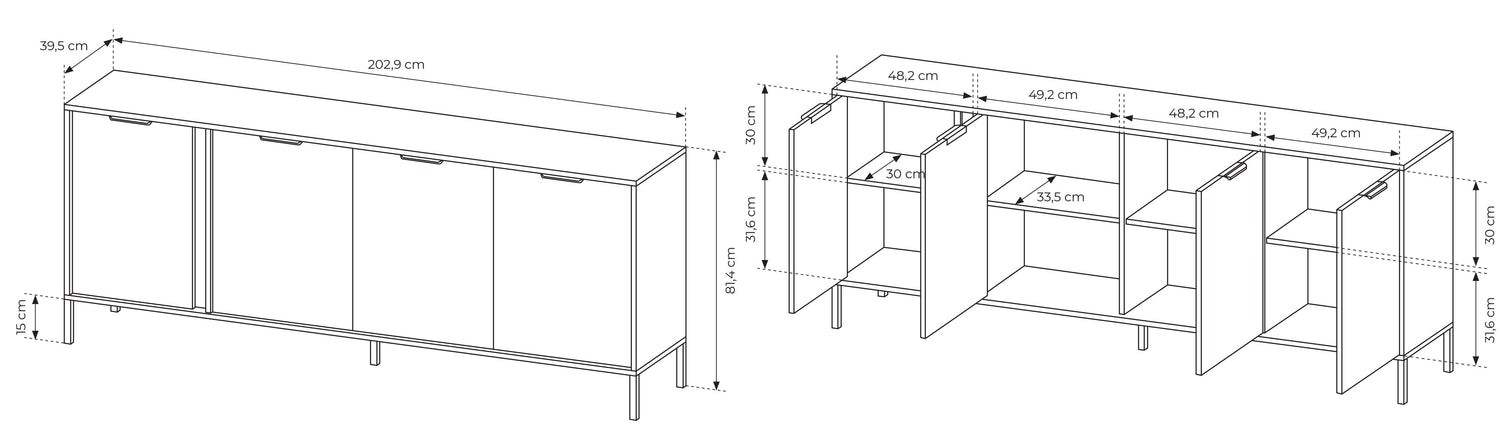 - Sideboard 203 4d: 202,9/81,4/39,5 cm