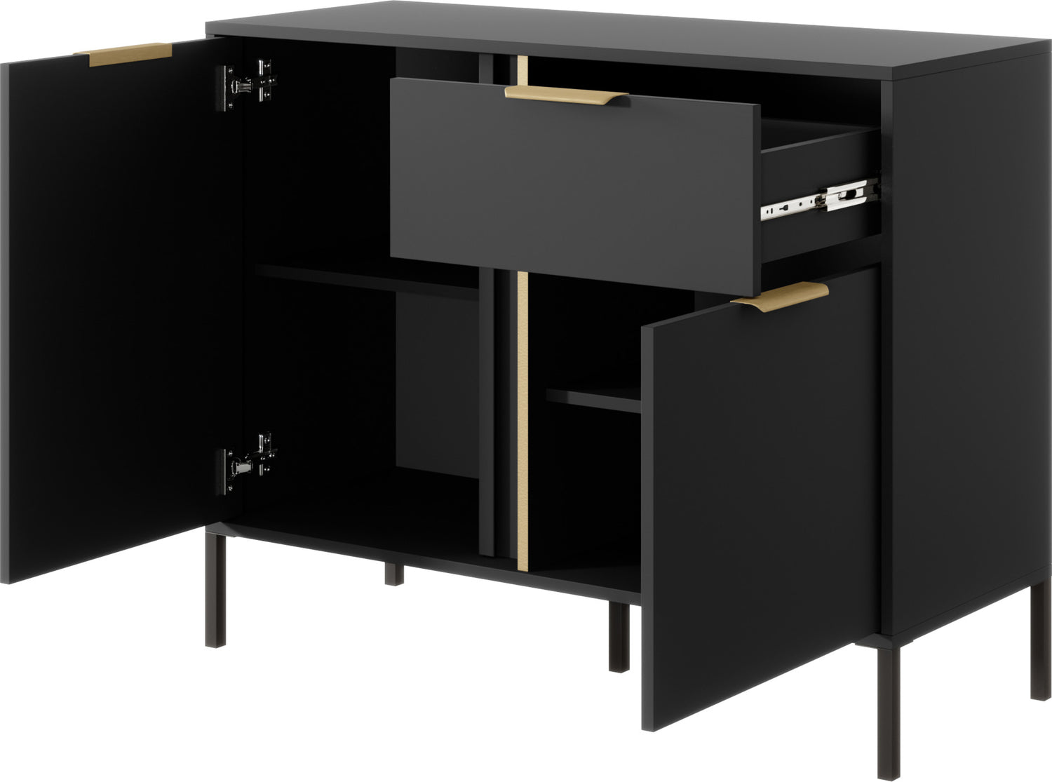 - Goldene Griffleisten für eine klare, elegante Optik