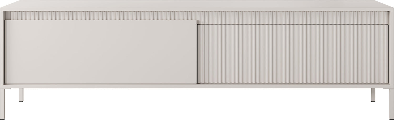 Das TV-Lowboard Cindy kombiniert minimalistisches Eleganz mit funktionalem Design. Die grifflosen Fronten, ruhigen Farbtöne und filigranen Metallbeine machen das Lowboard zur idealen Wahl für minimalistische oder skandinavisch inspirierte Wohnräume.