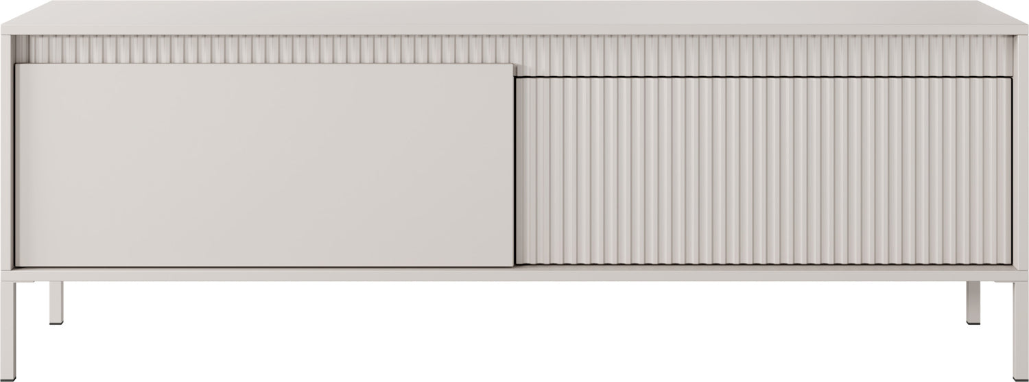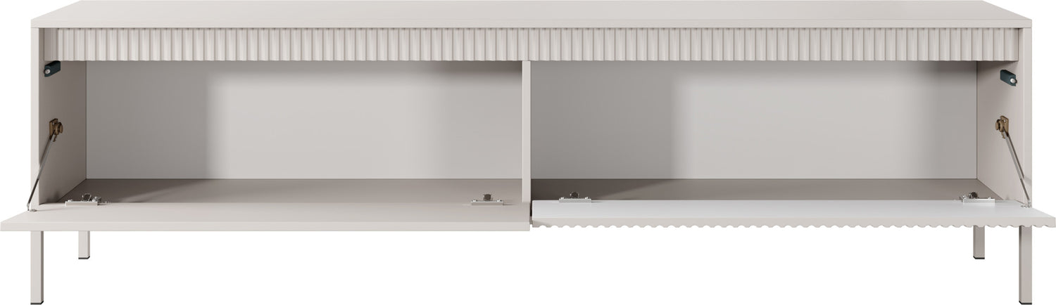 Erhältlich in zwei Größen, passt sich Cindy perfekt an verschiedene Raumkonzepte an. Die geschlossenen Fächer sorgen für Ordnung und bieten ausreichend Platz für Technik, Konsolen oder Zubehör – dank rückseitigem Kabeldurchlass auch ohne sichtbaren Kabelsalat.