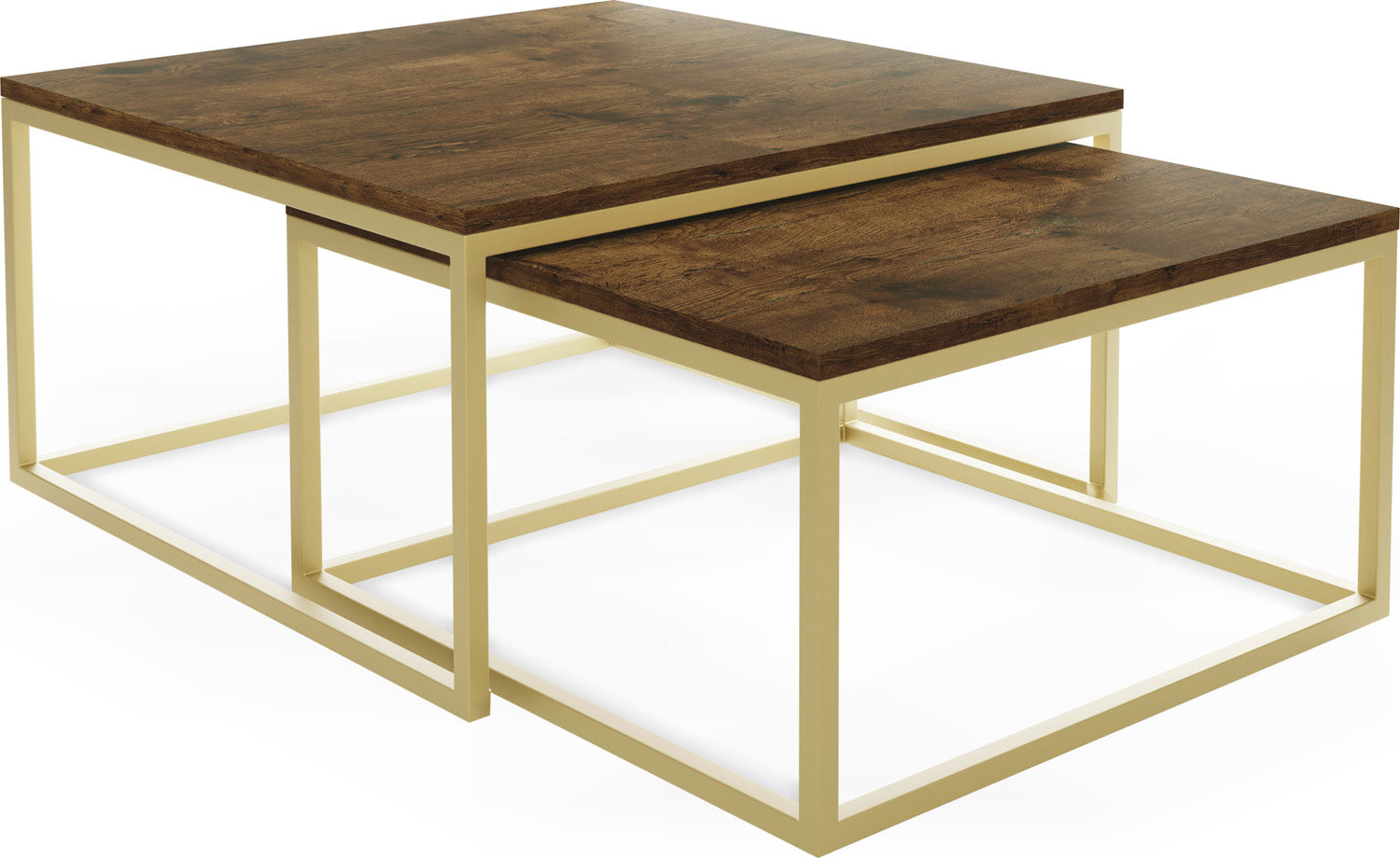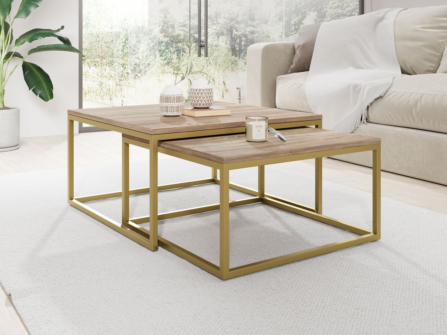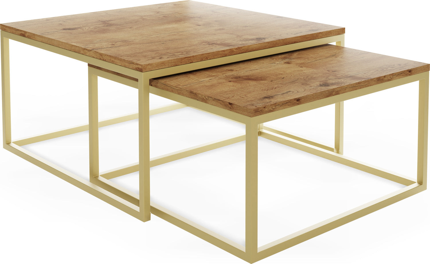 Rechteckige Quadratische Satztische Couchtische mit Gold Gestell - Loft Style Couchtische Metallbeine - 2 in 1 - Zwei Industrielle Getrennte Tische für Wohnzimmer