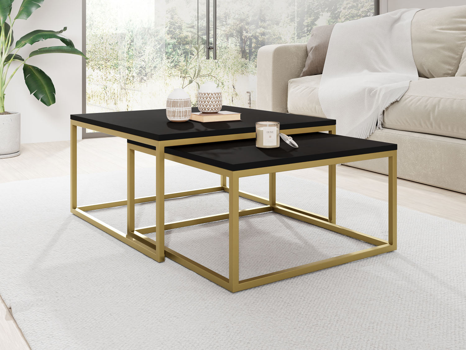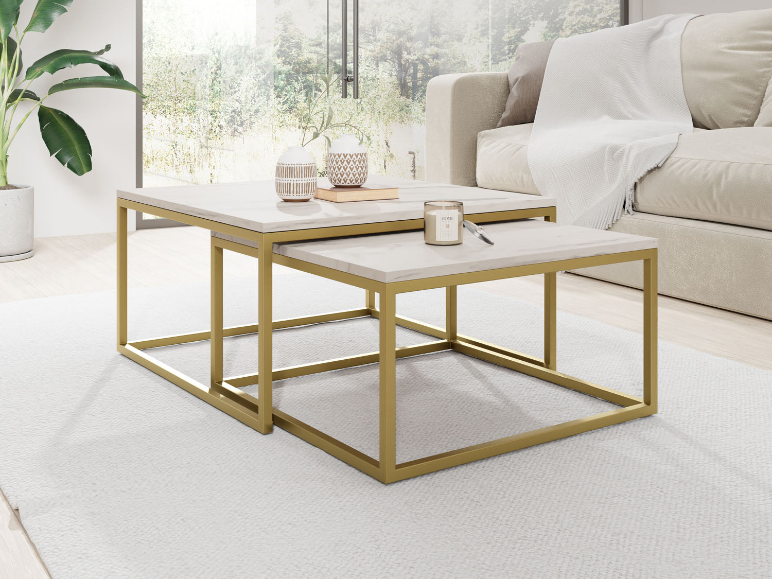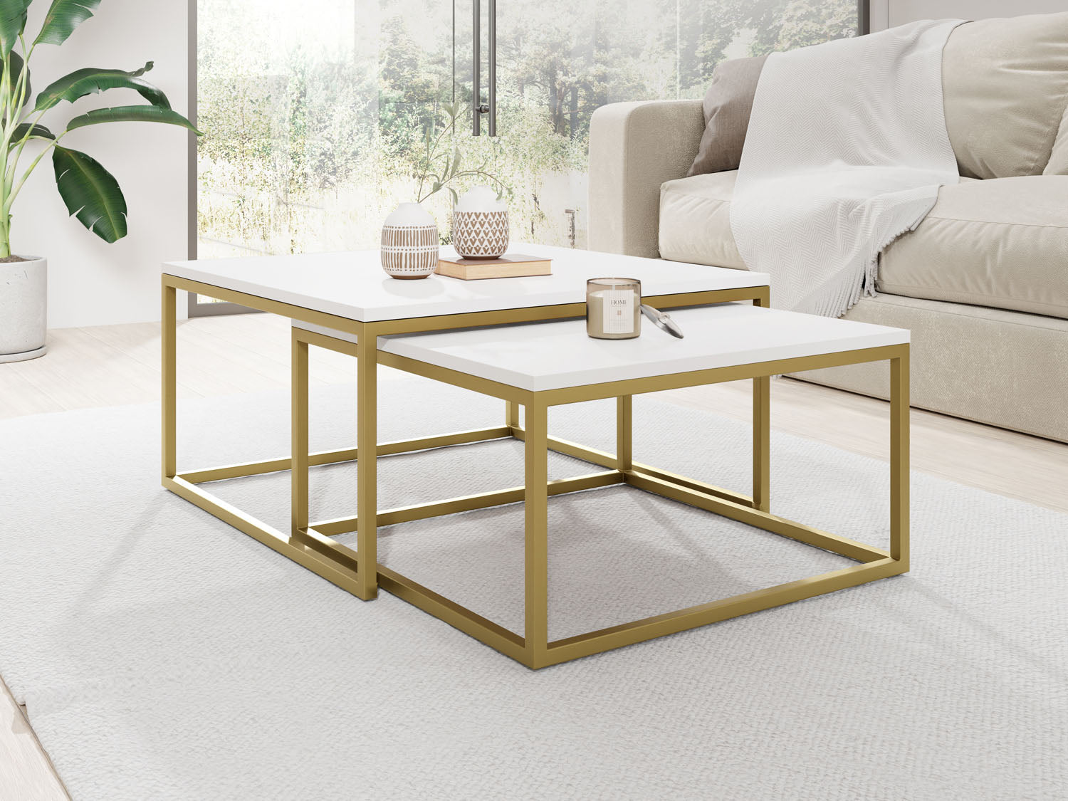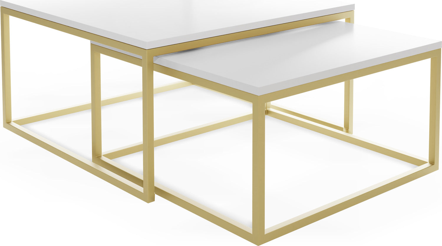Rechteckige Quadratische Satztische Couchtische mit Gold Gestell - Loft Style Couchtische Metallbeine - 2 in 1 - Zwei Industrielle Getrennte Tische für Wohnzimmer
