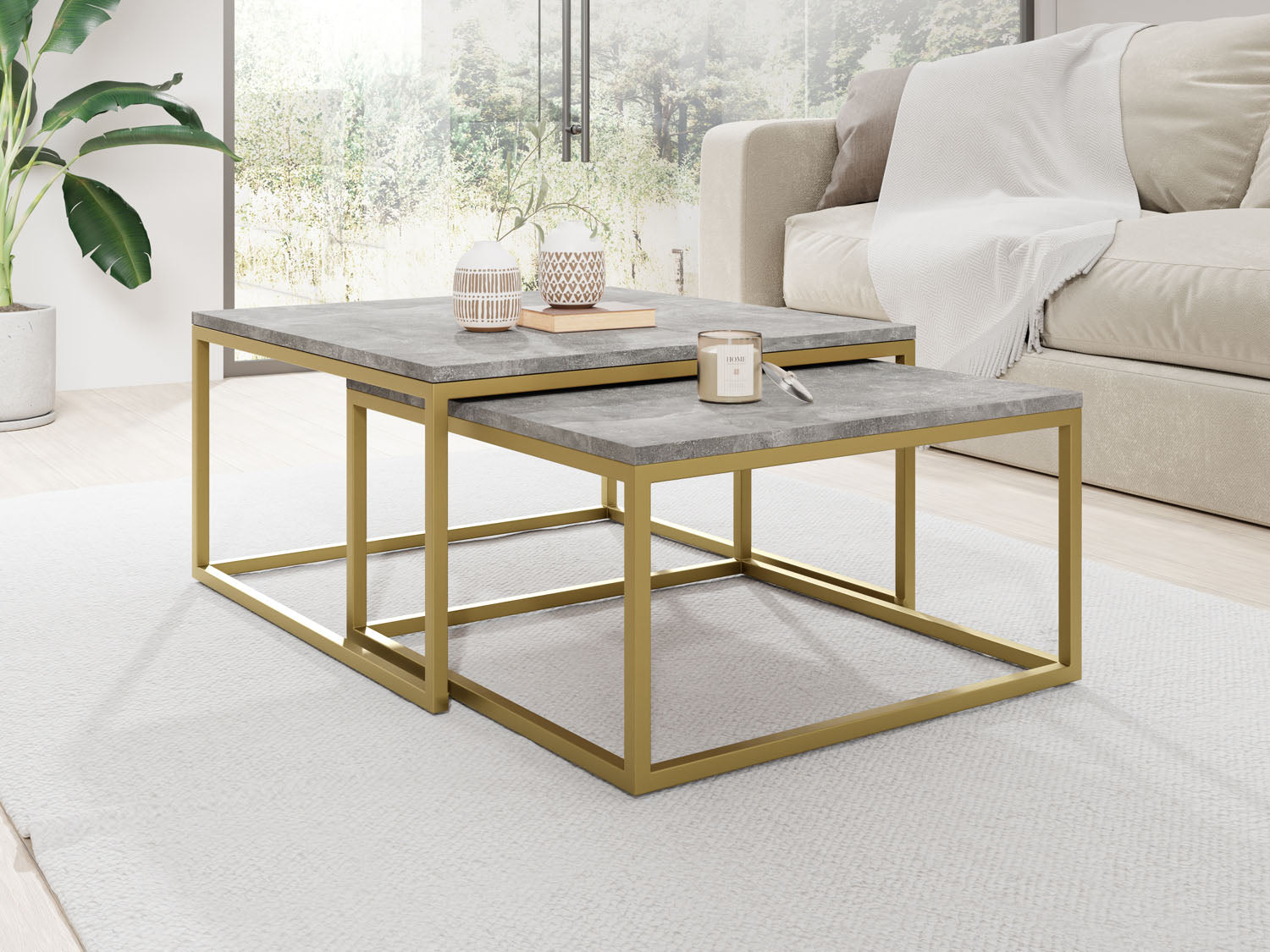 Rechteckige Quadratische Satztische Couchtische mit Gold Gestell - Loft Style Couchtische Metallbeine - 2 in 1 - Zwei Industrielle Getrennte Tische für Wohnzimmer - Betongrau / Eine Größe ist auf Lager und wird versandt, sobald es wieder verfügbar ist