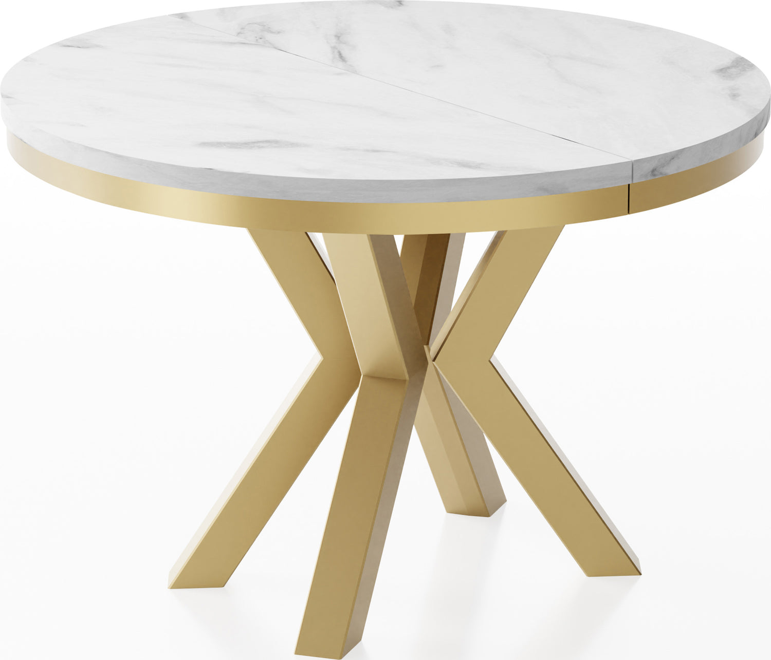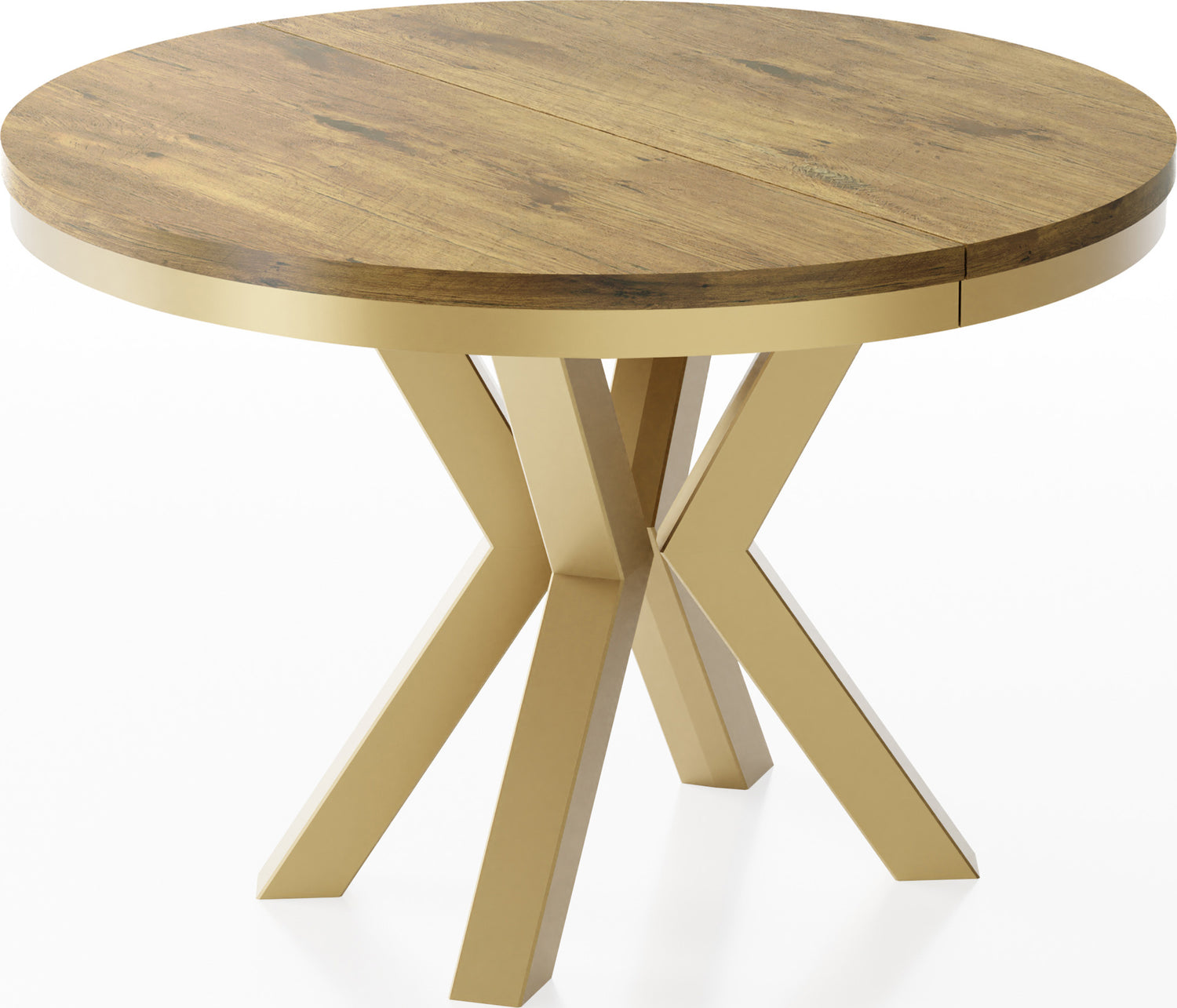 Runder Ausziehbarer Esstisch Clara im Loft-Stil – Industrieller Tisch mit Goldenen Metallbeinen – Made in EU