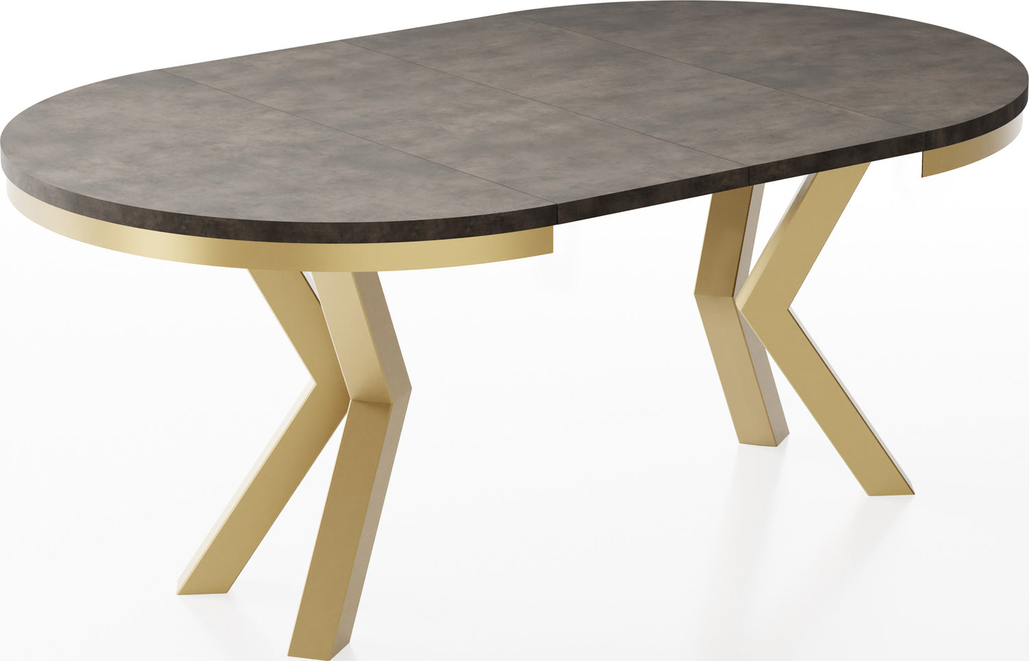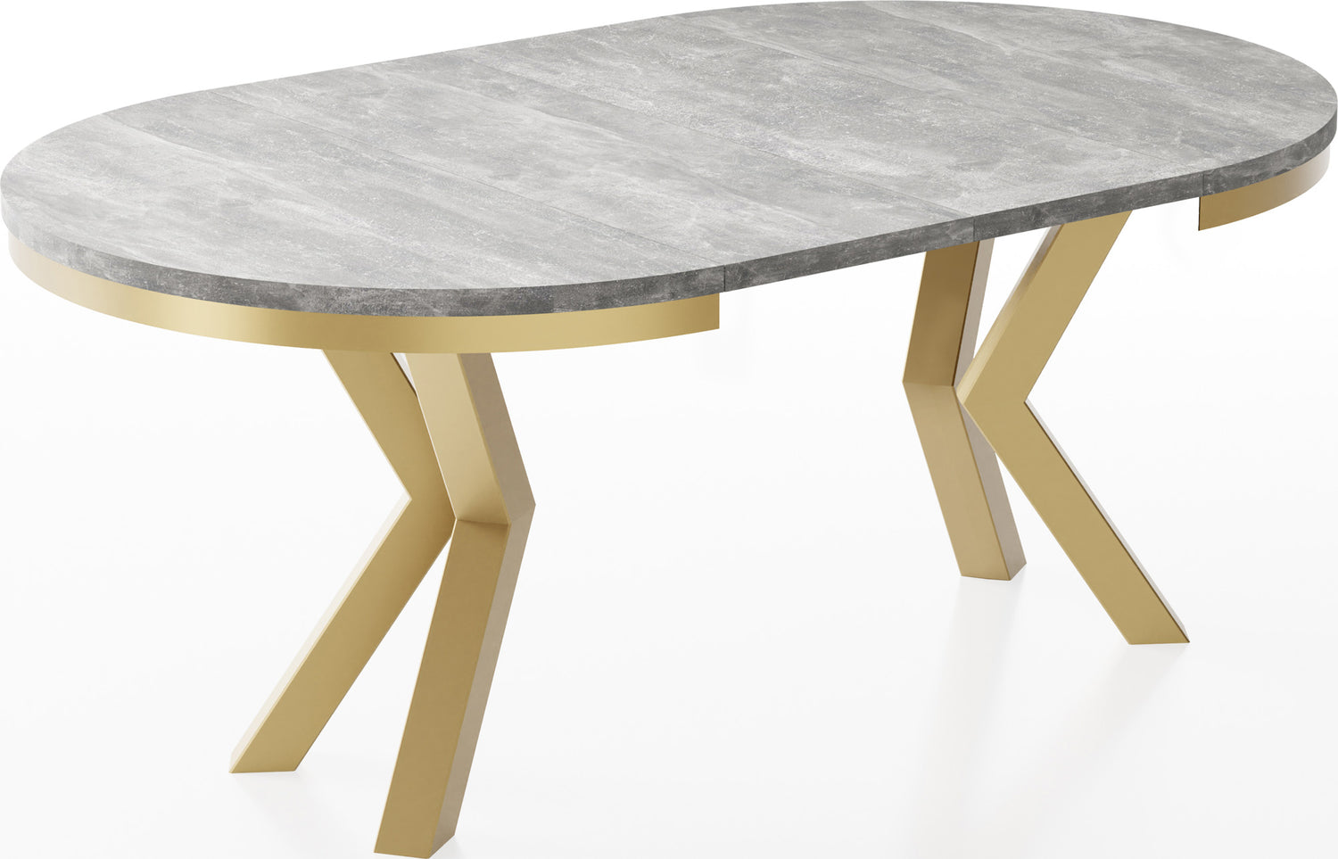 Runder Ausziehbarer Esstisch Clara im Loft-Stil – Industrieller Tisch mit Goldenen Metallbeinen – Made in EU - Betongrau / 100 / 180 cm ist auf Lager und wird versandt, sobald es wieder verfügbar ist