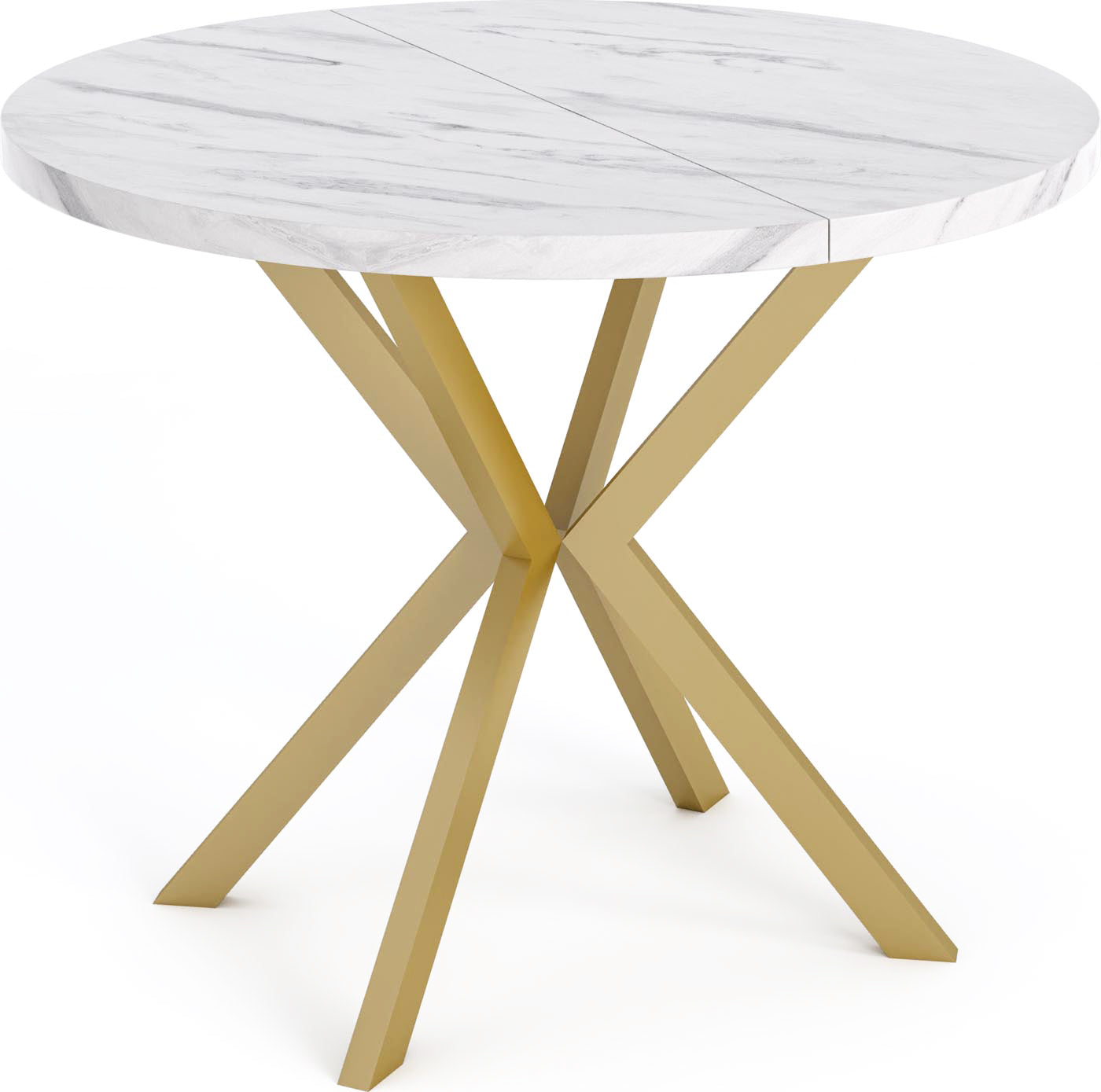 Runder Ausziehbarer Esstisch – Loft Style Tisch mit Goldenen Metallbeinen – 100 bis 180 cm – Industrieller Rund Tisch für Wohnzimmer – Spacesaver - Weißer Marmor / 100 / 180 cm ist auf Lager und wird versandt, sobald es wieder verfügbar ist