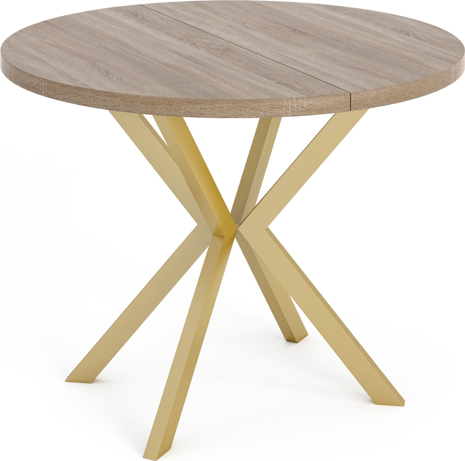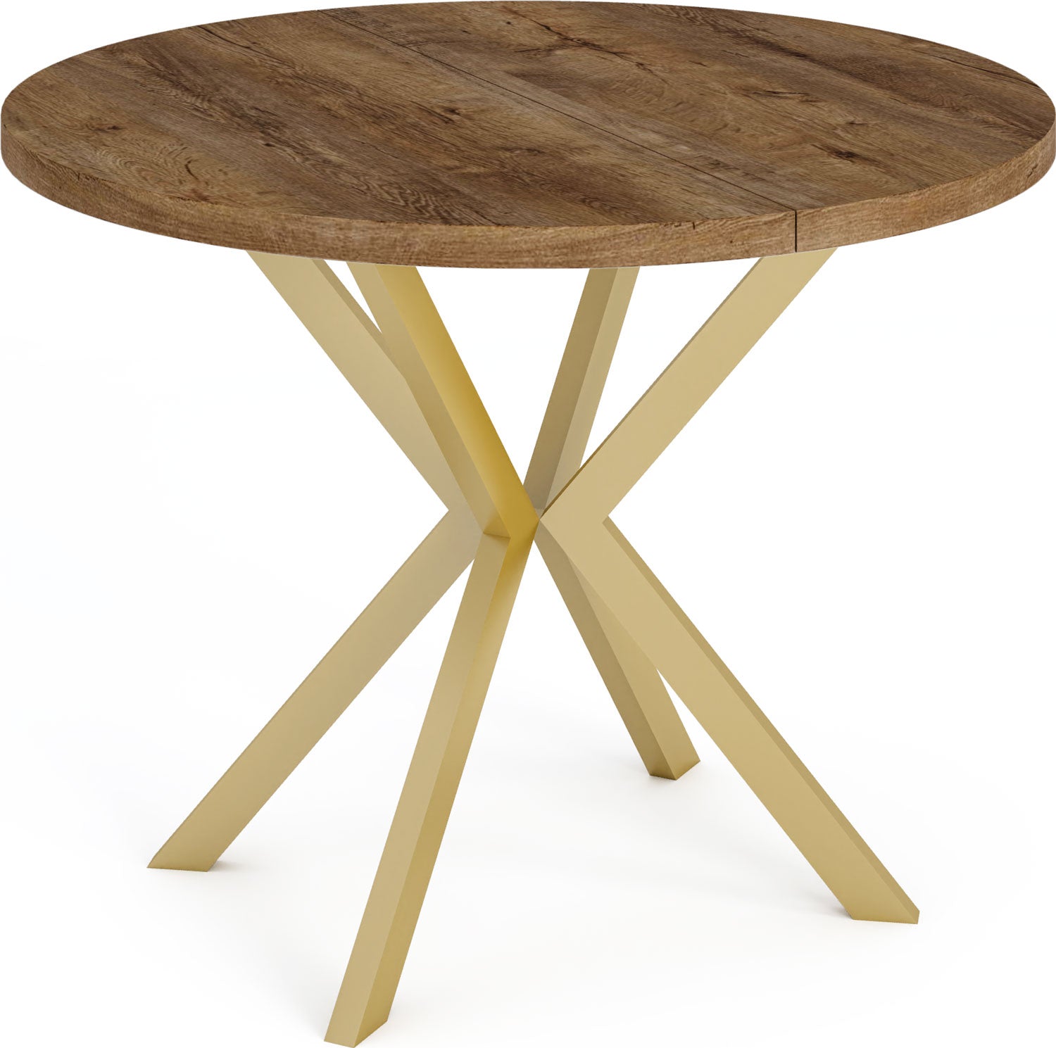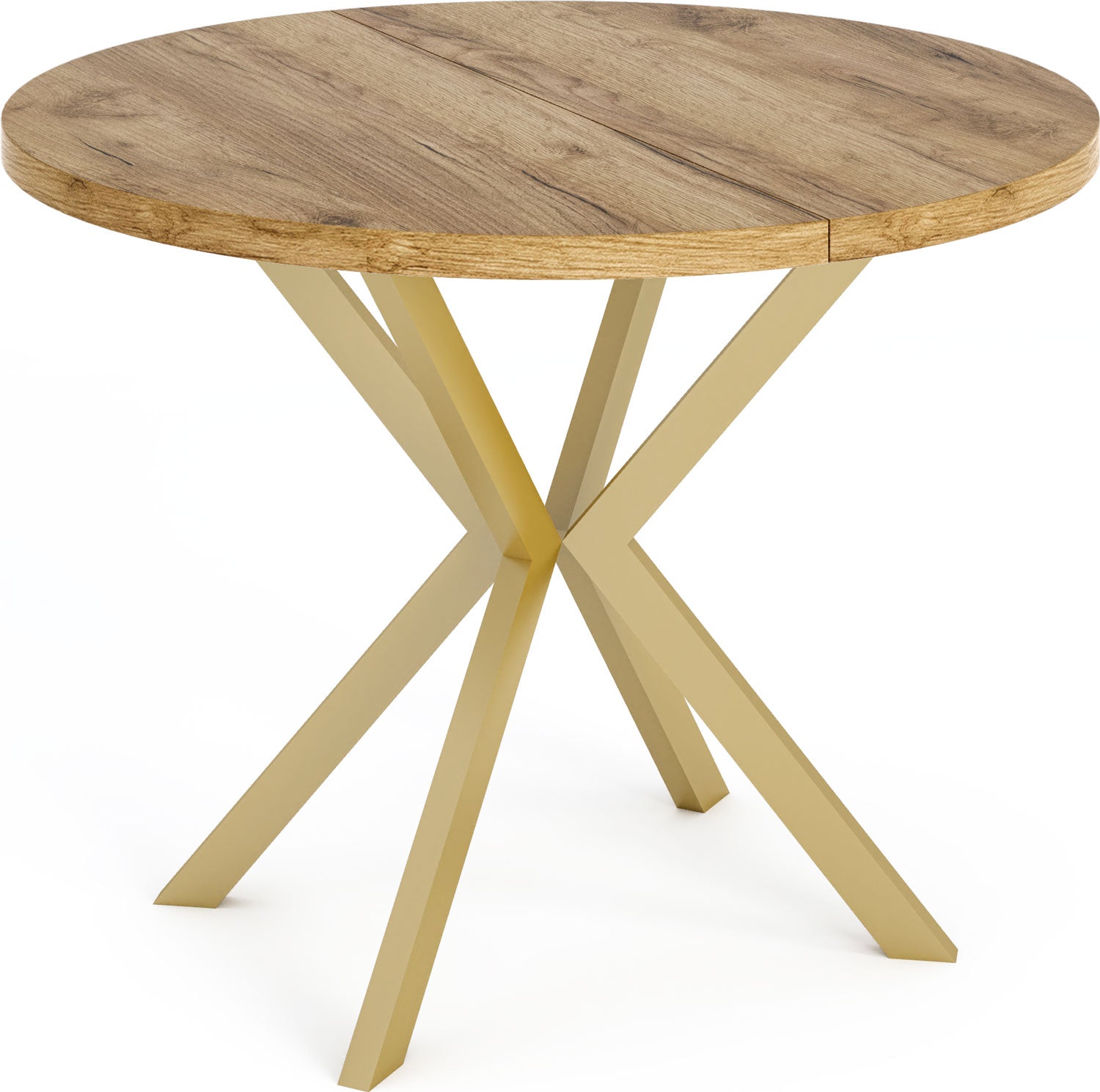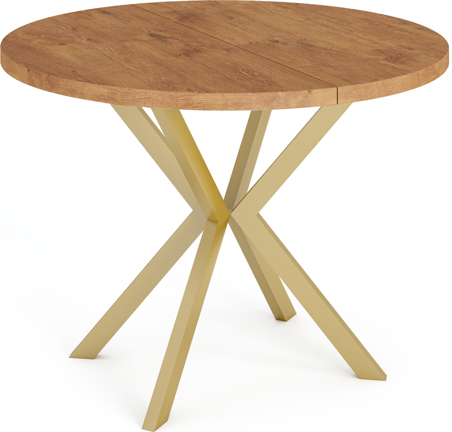 Runder Ausziehbarer Esstisch – Loft Style Tisch mit Goldenen Metallbeinen – 100 bis 180 cm – Industrieller Rund Tisch für Wohnzimmer – Spacesaver