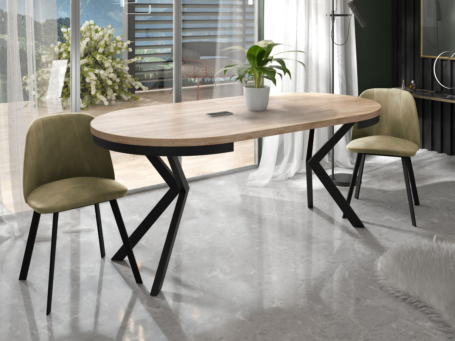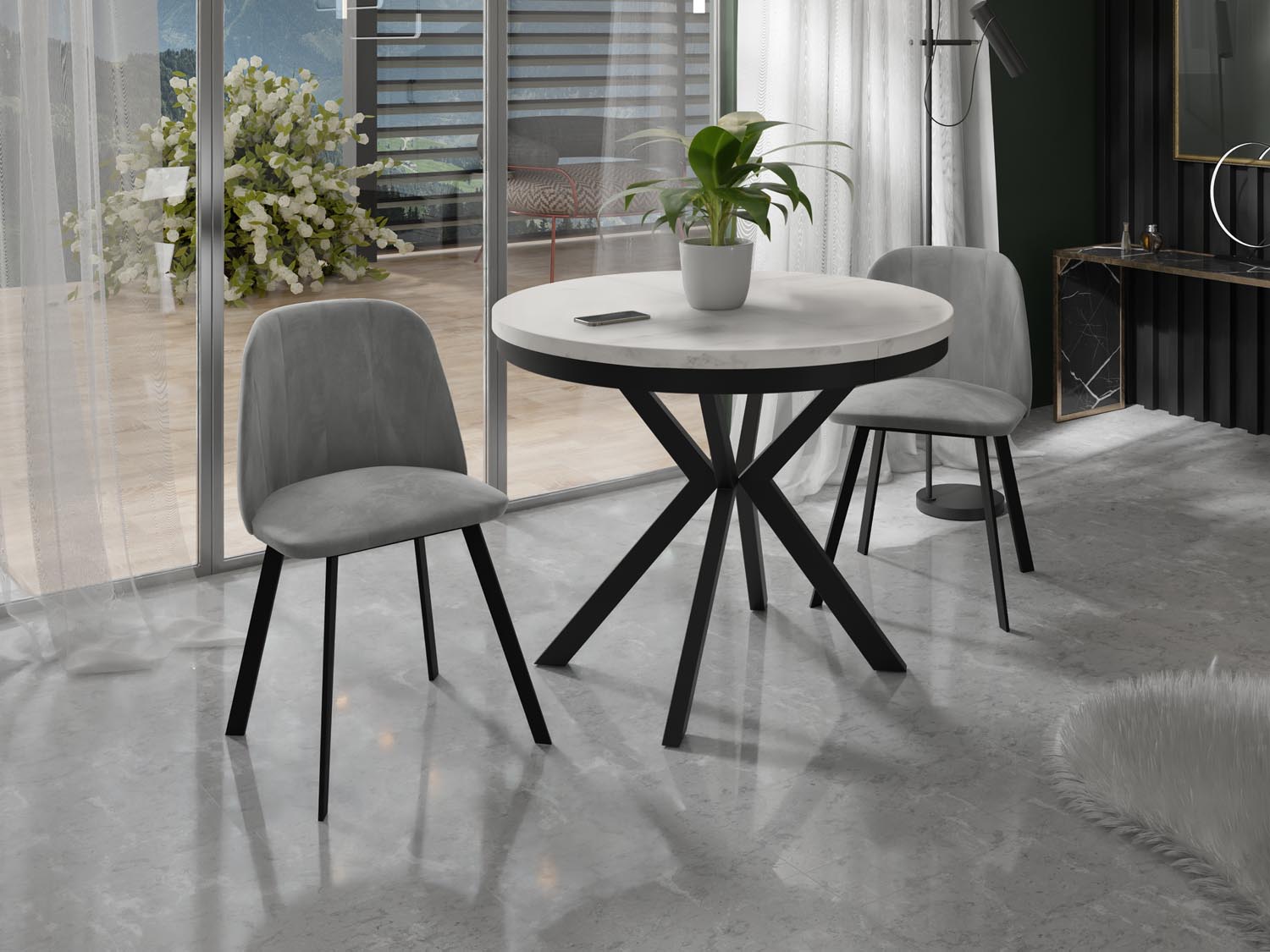 Eleganz und Funktionalität in einem Der Ross Esstisch vereint modernes Design mit praktischer Funktionalität. Die runde Form und das markante X-Gestell in schwarzen schaffen einen zeitlosen Look, der sich harmonisch in Ihr Zuhause einfügt.