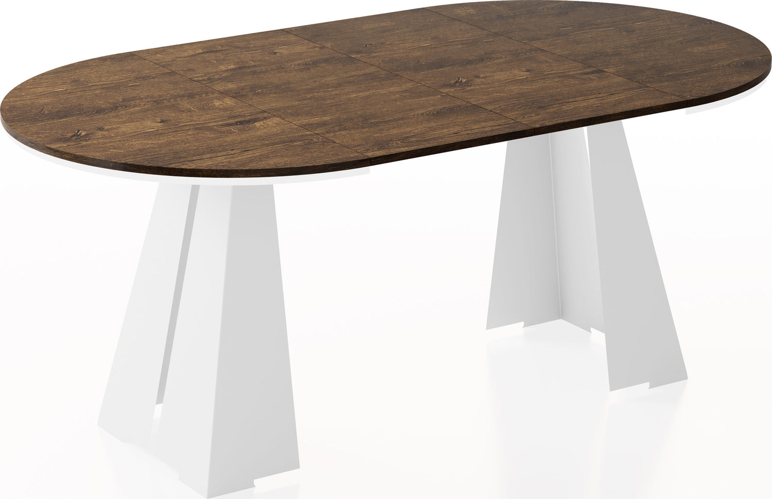 Runder ausziehbarer Esstisch mit weißem Metallgestell – moderner industrieller Tisch für Esszimmer oder Küche – 100 cm bis 180 cm – Made in EU