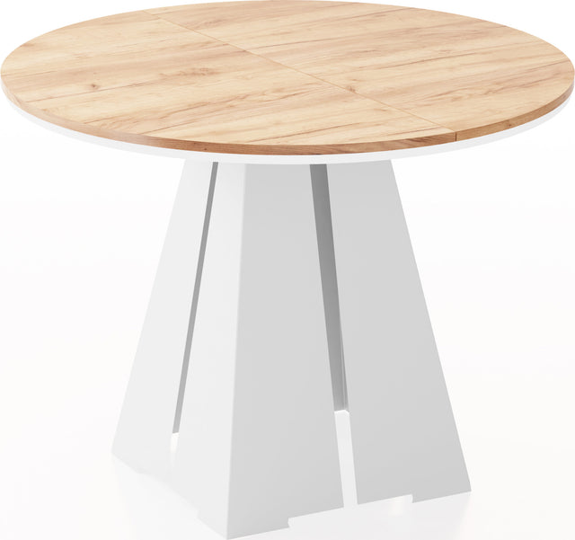 Runder ausziehbarer Esstisch mit weißem Metallgestell – moderner industrieller Tisch für Esszimmer oder Küche – 100 cm bis 180 cm – Made in EU - Craft Eiche / 100 / 180 cm ist auf Lager und wird versandt, sobald es wieder verfügbar ist