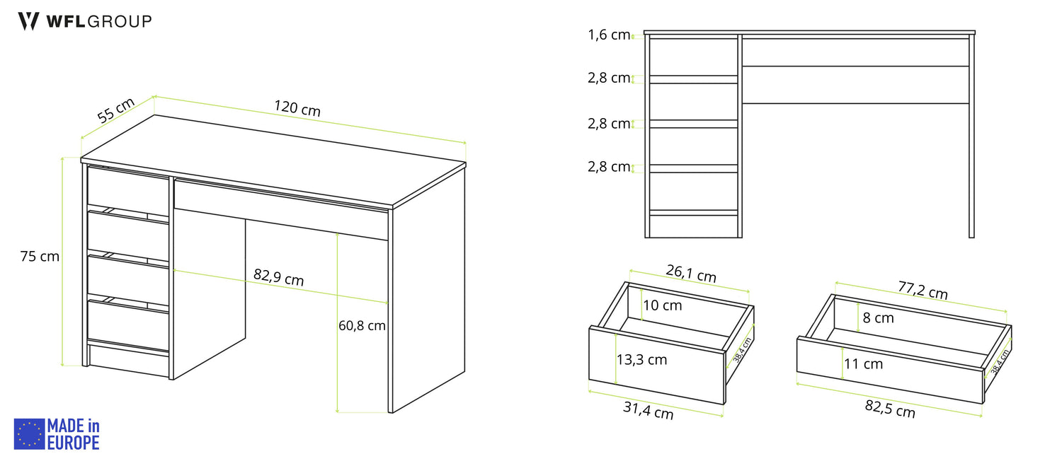 Schreibtisch KORVI 120 cm mit 5 Schubladen – minimalistisches, skandinavisches Design
