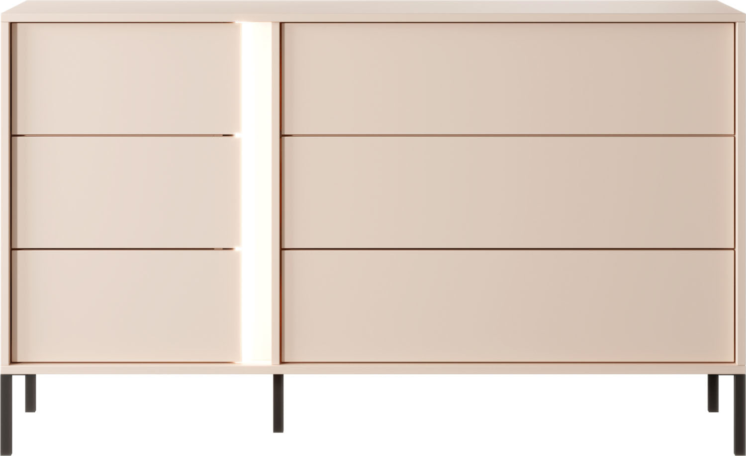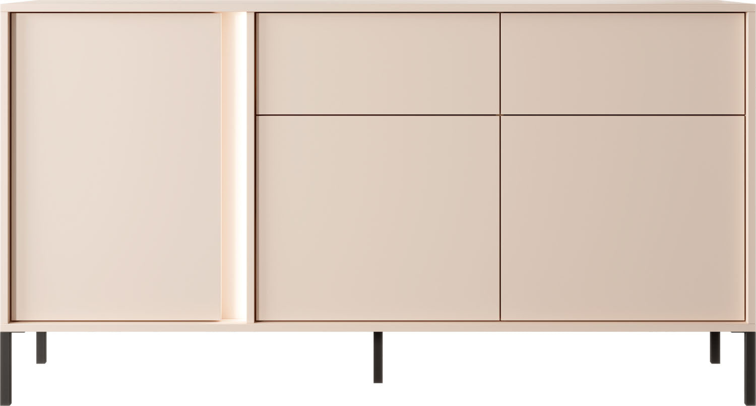 Bringen Sie dezente Eleganz und funktionale Ordnung in Ihr Zuhause – mit den Sideboards der DONNA-Kollektion in mattem Beige und schwarzen Metallfüßen. Die ruhige Farbgebung, grifflosen Fronten und klare Linienführung machen diese Serie zur perfekten Wahl für moderne Wohn- oder Essbereiche.